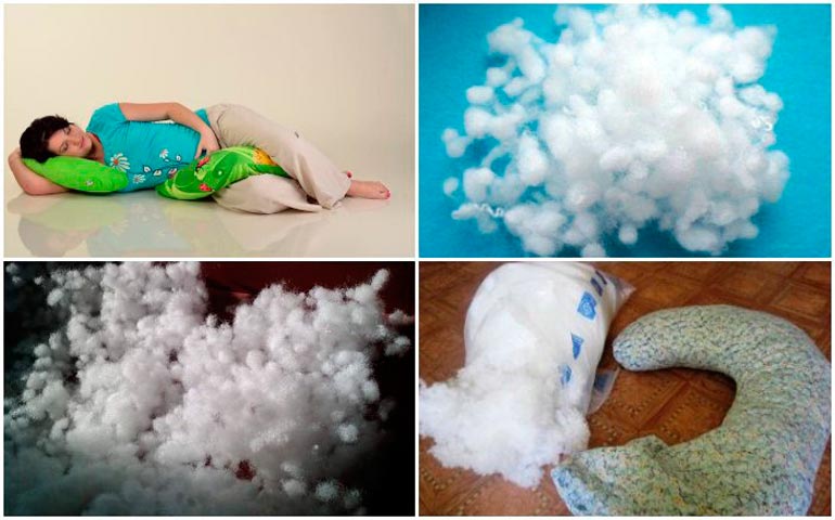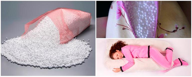 Polystyrène expansé - Une charge très intéressante, qui est une petite boule. Il est absolument sans danger, il n'est pas menacé par les tiques, les moisissures et divers micro-organismes. Un oreiller rempli de mousse de polystyrène épousera les contours de votre corps, ce qui vous permettra de vous mettre à l'aise. De plus, il ne jaillit pas.