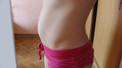 - L'utérus ne s'insère plus dans l'espace pelvien et commence progressivement à occuper la cavité abdominale. Par conséquent, le ventre devient de plus en plus visible, jusqu'à présent, il n'interfère pas. Sauf que les vêtements moulants ne conviennent plus;