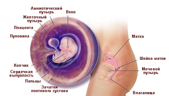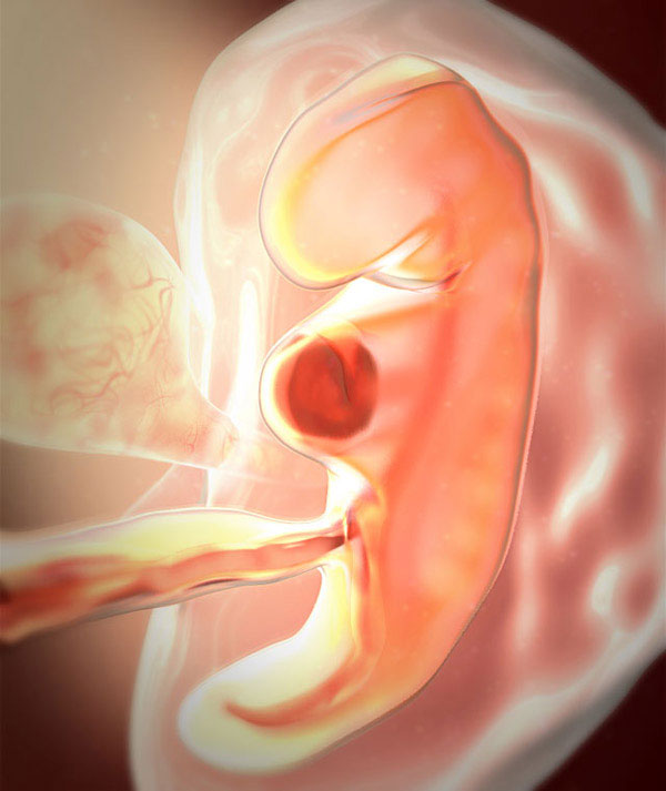 Et un autre processus important prend naissance au cours de la cinquième semaine: la formation du placenta. Grâce à la place de l'enfant et au cordon ombilical, l'enfant à naître recevra des nutriments par le sang de la mère jusqu'à la naissance et se débarrassera des produits de décomposition.