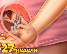 Kind.Der Junge hat bereits den Kopf gesenkt. Er verliert den ursprünglichen Flaum und wird viel weniger Schmiermittel. Manchmal kratzt er sich und macht unangenehme Handbewegungen. Seine Lungen sind bereits bereit für die Luftatmung. Eine zukünftige Mutter kann ihren Babyschluckauf in ihrem Bauch spüren. Sein Gewicht beträgt 3000 g, Länge - 50 cm.