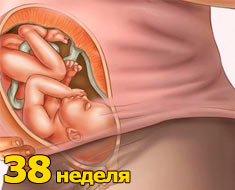 Kind.Das Baby ist voll entwickelt, alle Organe funktionieren einwandfrei. Er wächst weiter und nimmt zu, im Bauch wurde er ziemlich überfüllt. Die Schädelknochen werden weiter gestärkt, was den Durchgang des Babys durch den Geburtskanal etwas erschweren kann. Es ist notwendig, die Anzahl der Bewegungen pro Stunde zu berechnen, und wenn es mindestens 10 sind, ist alles in Ordnung mit dem Baby.