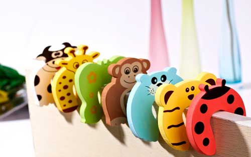 Afin de sécuriser les portes intérieures, utilisez des dispositifs spéciaux: verrous ou bouchons. Ils, ainsi que les revêtements de meubles, sont fabriqués à partir d'une grande variété de matériaux. Vous pouvez choisir des animaux qui avec leurs "pattes" tiennent soigneusement la porte, les papillons, les fleurs, etc. Selon les préférences, les bouchons fusionnent en couleur avec la porte ou dans une couleur vive contrastée, qui peut devenir un élément de design lumineux.