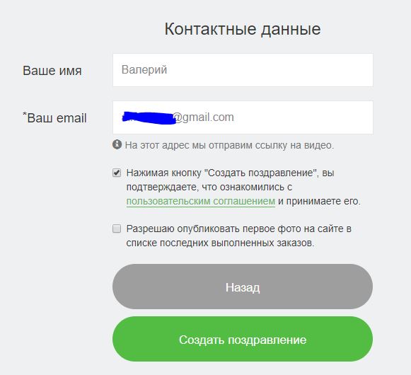 Le coût de la vidéo est de 450 roubles. La vidéo sera prête dans quelques heures (nous avons reçu la vidéo dans les 15 minutes). Le coût peut être réduit de 10% en présence du code promotionnel kroha2019 (prix 405 roubles).