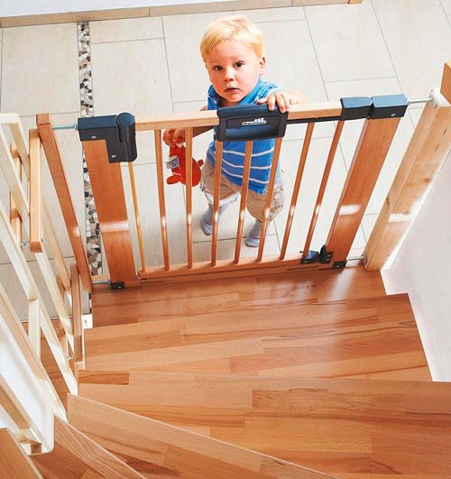 Une autre notion utile est la barrière de sécurité. Ils sont installés dans l'embrasure de la porte et limitent les mouvements du bébé. Il existe de nombreux types d'un tel appareil. Certains s'ouvrent des deux côtés et permettent aux adultes de passer librement par la porte. Il y a ceux à partir desquels vous pouvez collecter une clôture pour l'enfant et aménager une aire de jeux.