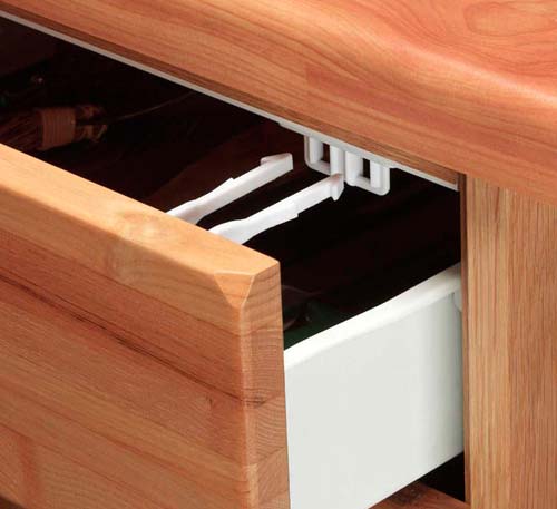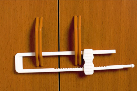 Les jeunes enfants sont très curieux, ils tirent donc souvent sur les poignées des tiroirs et des armoires. C'est bien quand les portes des meubles se ferment. Ensuite, ils doivent être verrouillés; les clés ne peuvent pas être laissées dans les trous de serrure. Si les portes sont sans serrures, des serrures spéciales vous aideront. Certains modèles fixent les poignées des armoires, d'autres sont fixés aux murs du meuble et ne permettent pas de retirer les tiroirs.
