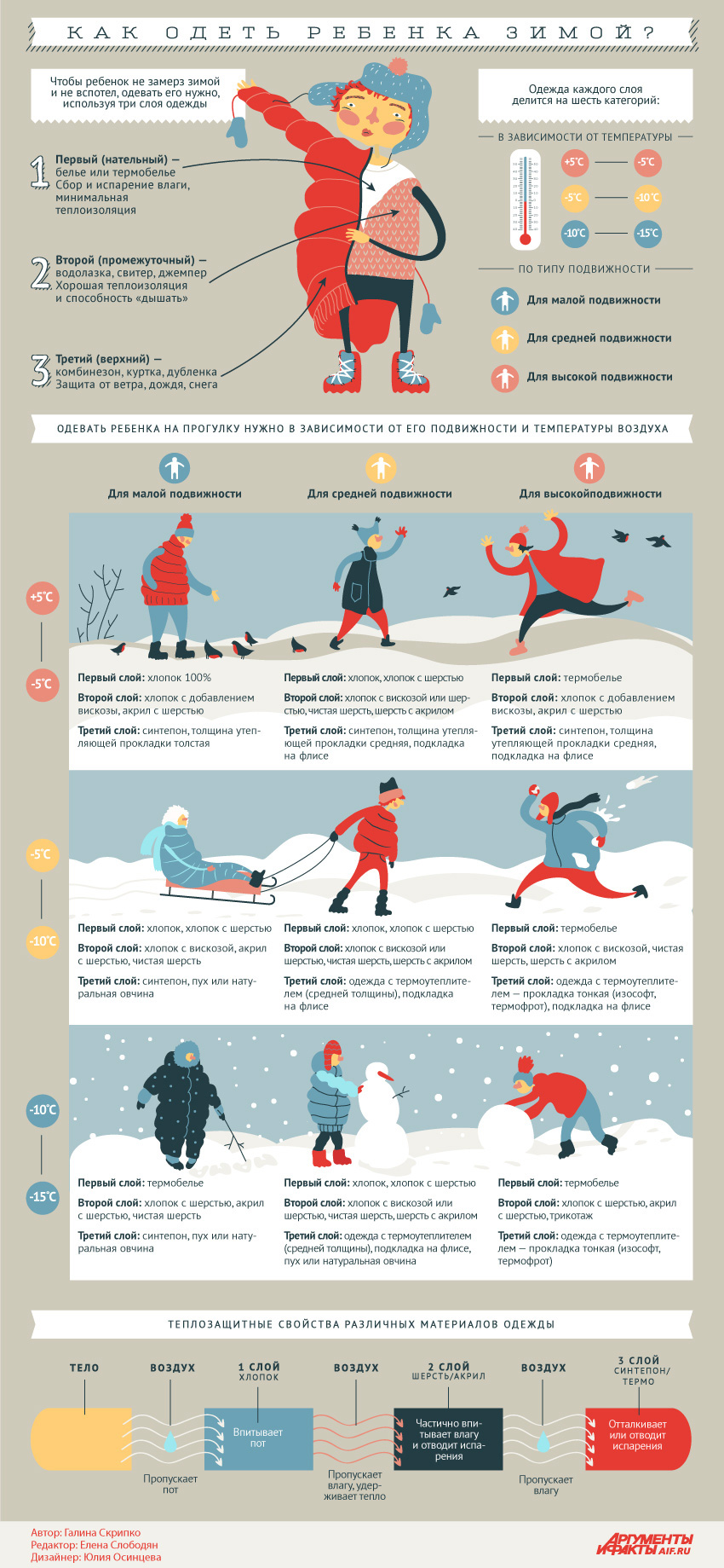 En cas de gel intense, nous laissons les mêmes vêtements, mais nous limitons le temps de marche: un maximum d'une heure par temps calme et jusqu'à 30 minutes par vent. Les enfants de moins de 1 an ne doivent pas être emmenés à l'extérieur lorsque la température descend en dessous de -15 degrés.