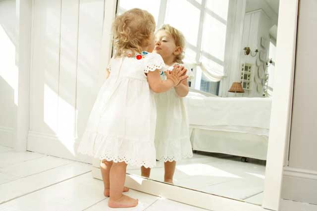 À 5-6 ans, la situation évolue et l'intérêt pour le miroir reste surtout chez les filles. Ils peuvent regarder leur propre réflexion pendant très longtemps, s’admirer, essayer des tenues. Dans ce cas, le miroir aide à développer le goût et la précision. Si vous placez un sac à cosmétiques pour enfants, un peigne et une poupée près du miroir, la fille prendra soin d'elle et du jouet. La maman peut également aider à augmenter l'estime de soi de sa fille. Chaque fois après avoir peigné ou changé de vêtements, vous devez amener la fille au miroir avec des mots sur son apparence. Et ces actions habitueront rapidement l'enfant à la précision plutôt qu'à la censure. L'enfant doit se regarder et voir non pas ses propres défauts, mais les vertus de son apparence. Grâce au miroir, les enfants apprennent à s'aimer et à se débarrasser des complexes d'infériorité.