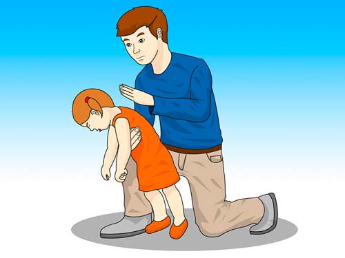 Avec la base de la paume de votre main libre, faites 5 claquements de suite entre les omoplates de l'enfant.
