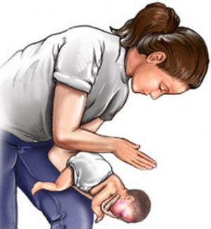 - Si l'enfant s'étouffe avec de l'eau ou du lait, il commence à tousser violemment (étouffement de toux, respiration bruyante), vous devez lui tourner le dos, le serrer d'une main tout en lui appuyant sur le ventre, incliner le bébé vers l'avant et lui tapoter le dos.
