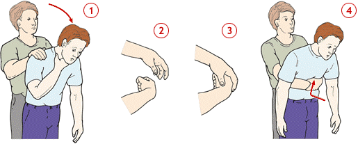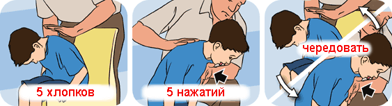 Si ces mesures ne vous aident pas, appelez une ambulance et avant son arrivée, alternez 5 applaudissements sur le dos et 5 pressions sur la poitrine.