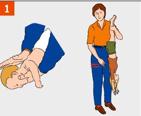 - Lorsqu'un objet étranger solide est coincé (bonbon glacé ou yeux d'un jouet préféré), nous plaçons l'enfant face vers le bas sur la main. La tête doit être en dessous de la poitrine. De votre main libre, nous giflons l'enfant entre les omoplates (Fig. 2). La deuxième option - nous prenons l'enfant par les jambes et l'abaissons à l'envers. De la même manière, nous frappons entre les omoplates (Fig. 3).