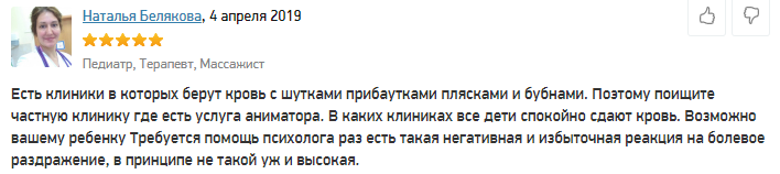 Les enfants ont peur des aiguilles pointues, des mains froides des infirmières et des cris des autres enfants qui sont déjà au bureau. Ces craintes peuvent être évitées en visitant des laboratoires privés avec votre enfant. Dans les cliniques privées, ils essaient autant que possible d'entourer les enfants avec soin, utilisent des matériaux modernes et offrent également des cadeaux aux enfants.