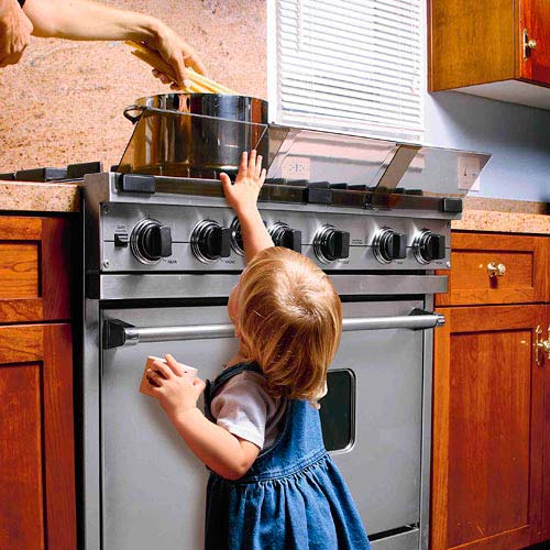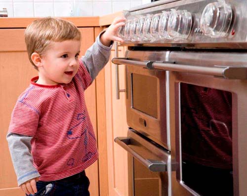 Dans la cuisine, l'enfant peut allumer la cuisinière, ouvrir le four ou renverser une poêle sur le brûleur. Pour éviter que cela ne se produise, vous devez protéger le poêle au maximum.