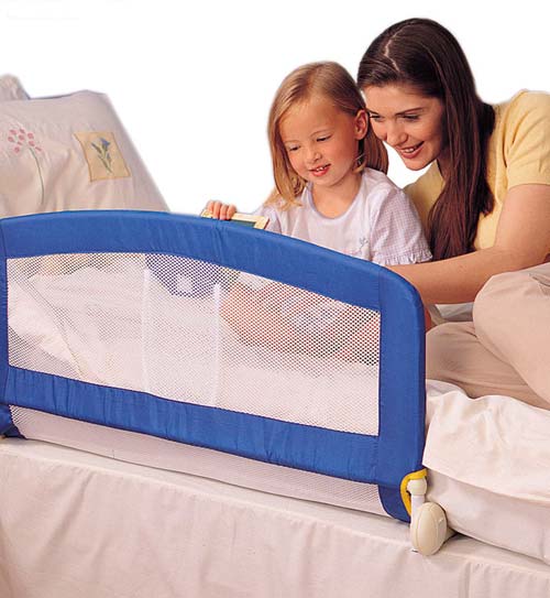 Si le bébé est déjà sorti d'un berceau, qui a de hauts murs, ou souvent un enfant dort sur le lit des parents - vous aurez besoin d'un dispositif de retenue. Il ne nécessite pas de procédure de fixation compliquée: il est maintenu par le poids de l'enfant et du matelas. (Limiteur pour lits Tomy (environ 2000 roubles)).
