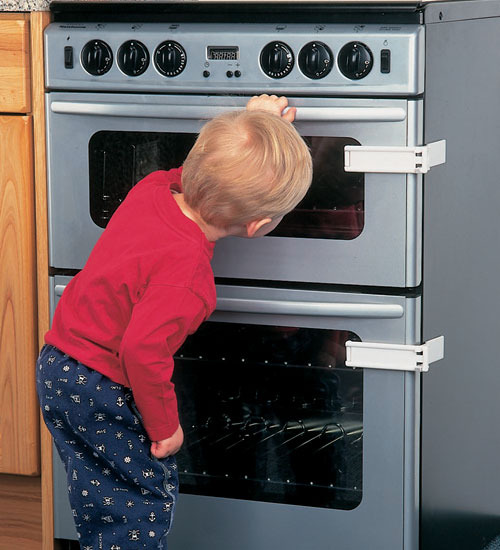- Serrure de sécurité pour le four. Fabriqué en plastique résistant à la chaleur, se compose de 2 parties: l'une est fixée à la paroi latérale du poêle, l'autre à la porte du four. (Clippasafe (environ 310 roubles));