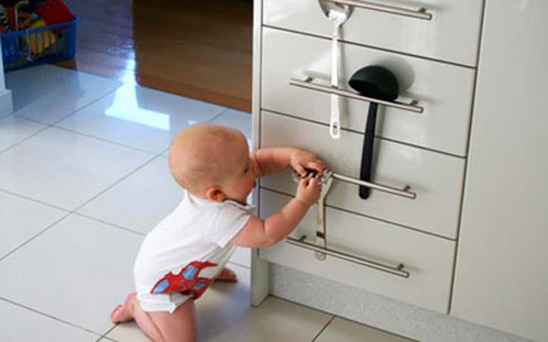 Le danger des jeux avec portes d'armoire est que les miettes peuvent accidentellement se pincer les doigts ou accéder à des objets "interdits". Pour éviter que cela ne se produise, il existe des serrures-serrures spéciales pour les armoires.
