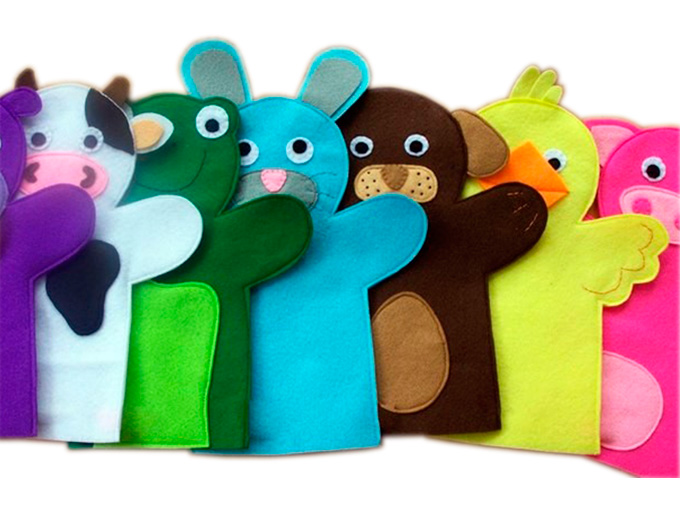 - caractères de type doigt de petite taille, qui sont portés sur les doigts. Ils peuvent être en feutre, en chaussettes ou en crochet.