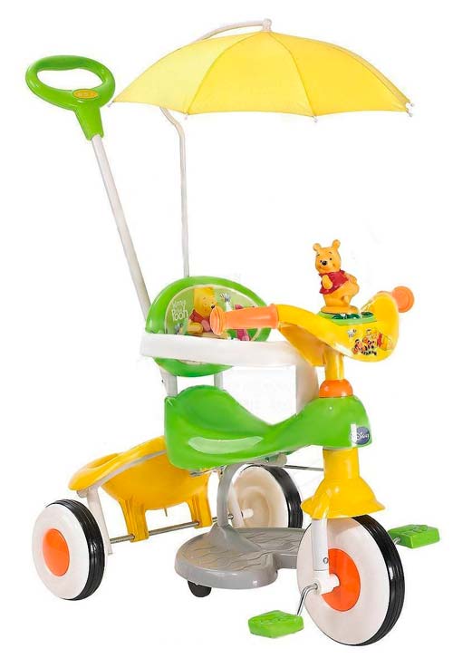 Le «véhicule» le plus populaire pour les enfants de 1 à 6 ans est le fauteuil roulant à vélo. Les modèles de production moderne sont équipés d'équipements pour le petit propriétaire et le parent.