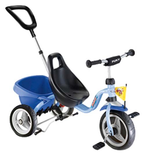 Le gurney fonctionne en deux modes. Puky peut être conduit à la fois par un enfant à travers les pédales et par maman à l'aide de la poignée et de la «roue libre».