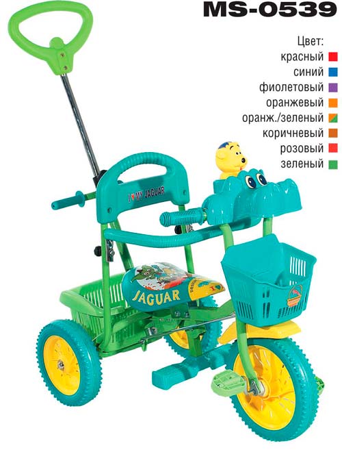 Jaguar a un auvent spécial contre le soleil (pas tous les modèles). Le siège est fiable et durable, il y a une poignée pour monter un enfant (volant). Dans le «tricycle», la partie divertissement a été élaborée: il y a un module musical qui amuse l'enfant pendant la promenade (pas tous les modèles). Le vélo a un bon design et de bonnes roues, ce qui augmente sa stabilité sur la route.