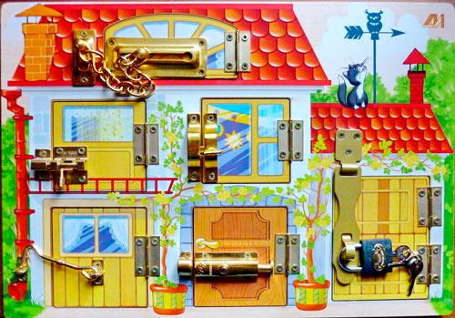 Un excellent développement pour les enfants - forme parfaitement la motricité fine des poignées de l'enfant. En ouvrant les serrures, les doigts se développent et l'enfant comprend comment ouvrir telle ou telle serrure.