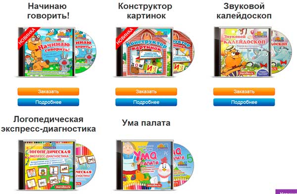 Vous pouvez vous engager non seulement sur le site en ligne, mais aussi commander des jeux / du matériel de formation et de l'orthophonie sur disques