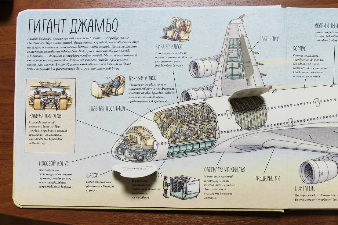 Le livre est frappant par sa taille - 30x22 cm! Et lorsque vous le déployez, le missile sur le demi-tour devient tout simplement énorme. Et quel plaisir de prendre et de regarder sous la peau, de découvrir en quoi consistent les mécanismes qui mettent ces moteurs en mouvement. Des feuilles épaisses vous permettront de jouer avec le livre pendant longtemps, sans avoir peur de le déchirer ou de l'endommager. Fenêtres et vannes - ce sont des éléments interactifs qui transformeront la visualisation d'images en un jeu passionnant.