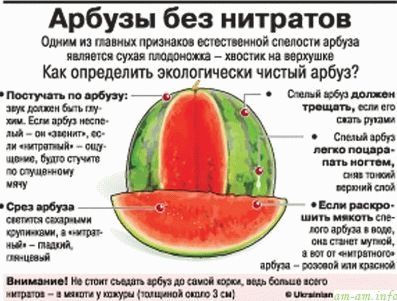 Mais le plus désagréable est que les nitrates passent facilement dans le lait maternel. Le corps d'un enfant jusqu'à un an n'est clairement pas en mesure de faire face à une telle charge sur les organes. Par conséquent, si vous décidez de manger une pastèque, assurez-vous d'obtenir un produit naturel qui, extérieurement, devrait vous inspirer confiance - pas de fissures, de bosses. Et surtout n'achetez pas de pastèques coupées.