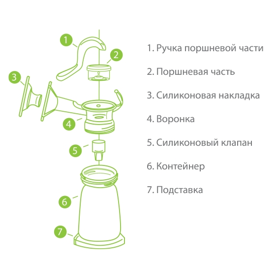 Le plus simple des appareils existants. Il se compose d'une buse sur la poitrine et d'une pompe en caoutchouc (ou poire). Lors de l'expression du lait avec un tel appareil, une femme doit souvent presser la pompe pour créer un certain vide autour du mamelon et provoquer une ruée de lait. Le lait vient avec chaque pression sur la poitrine.