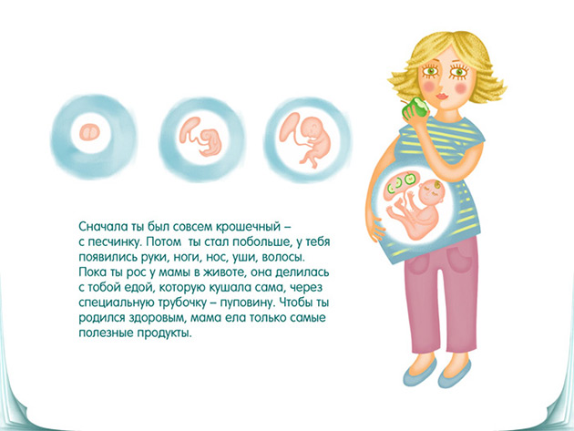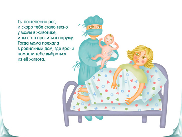 Vous pouvez dire que lorsque les gens s'aiment - ils aiment être ensemble, se toucher, s'embrasser, s'embrasser. C'est au cours de telles caresses que survient la grossesse. Parler en détail du processus de naissance n'en vaut pas la peine. On peut dire qu'un enfant est né à l'hôpital, avec l'aide de médecins.