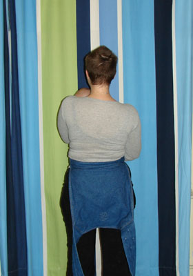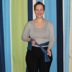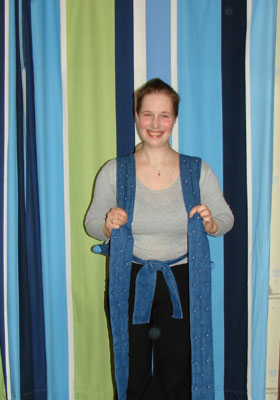 Afin de porter une écharpe May, vous devez d'abord attacher ses bords inférieurs à la taille.