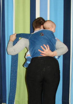 Lors de l’utilisation de tout type de harnais, il est important que l’enfant sur le dos de sa mère ne soit pas rejeté. Premièrement, cela ne convient pas à la mère elle-même et, deuxièmement, il est lourd de blessures. Lorsque vous attachez une écharpe, assurez-vous soigneusement que l'enfant est fermement appuyé contre votre dos. Si vous ne pouvez pas le gérer vous-même, il vaut mieux demander de l'aide de l'extérieur.
