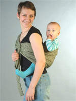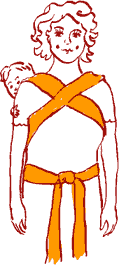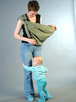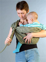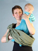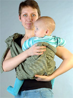 Choisissez d'abord l'épaule sur laquelle vous allez porter le bébé. Nous jetons le produit dessus de sorte que les anneaux soient situés sous la clavicule et le bas - au niveau de la partie saillante de la cuisse.