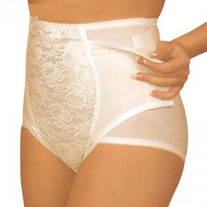 Bandage - culotte (grâce). Ce type de bandage est réalisé sous forme de slip. Sur l'estomac, il y a un insert dense. Dans de nombreux modèles sur les côtés, des attaches à plusieurs niveaux vous permettent d'ajuster la densité de l'attache. Il existe des modèles avec des attaches en bas, ils vous permettent de ne pas retirer le pansement pendant la toilette. Avantages: adhère parfaitement au corps, ne gonfle pas, ne glisse pas, ceinture parfaitement l'estomac. Vous permet de porter des vêtements moulants, car il est pratiquement invisible. Moins: nécessite un lavage quotidien.