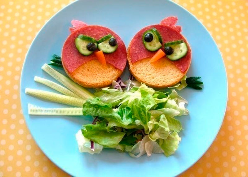 Expérimentez avec la portion originale de plats: mettez les légumes sur une assiette en forme d'arc-en-ciel, dessinez des étoiles crème sur la soupe de purée de brocoli, faites une chenille de filet de poulet ou un hibou de hérissons avec une purée de pommes de terre. A 2 ans, la «crise de l'appétit» s'installe quand ils commencent à abandonner leurs plats tant appréciés, mais avec une telle variété, sa carte ne sera pas complètement maigre.