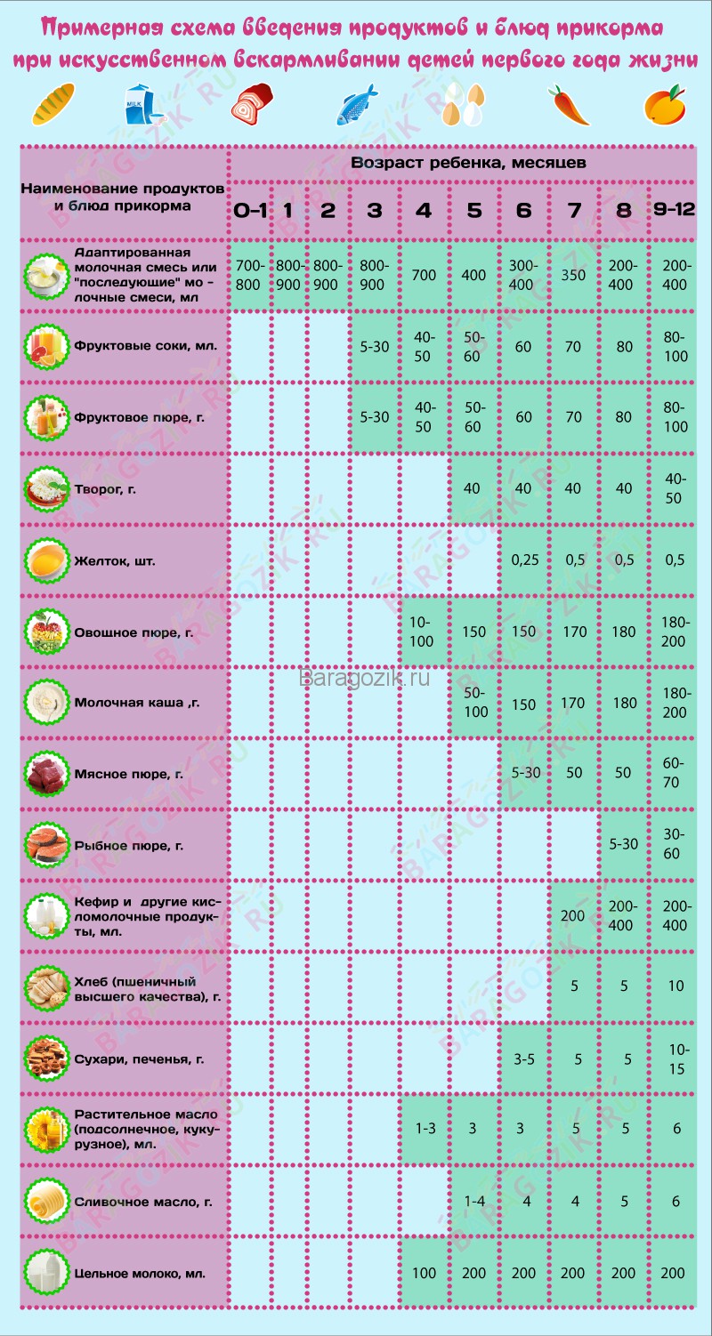 Le schéma général de l'introduction des aliments complémentaires lors de l'alimentation artificielle