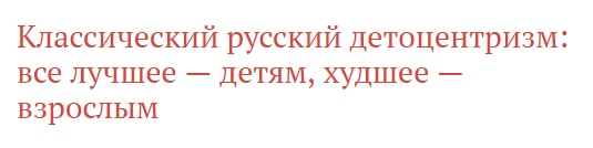 C'est une mentalité russe typique, sacrée en respectant les principes détocentrisme: tout le meilleur est pour les enfants ... et les adultes s'en sortiront.