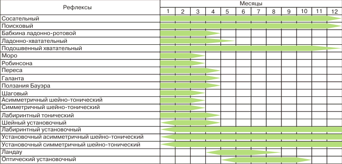 Avec de faibles manifestations des réflexes congénitaux du bébé montrer au neurologuequi prescrit un traitement. Il comprend généralement des exercices thérapeutiques et des massages. Si nécessaire, le médecin prescrit des nootropiques (un moyen de normaliser l'activité cérébrale).Un traitement similaire est nécessaire si les réactions inconditionnelles des miettes ne s'estompent pas pendant une longue période.
