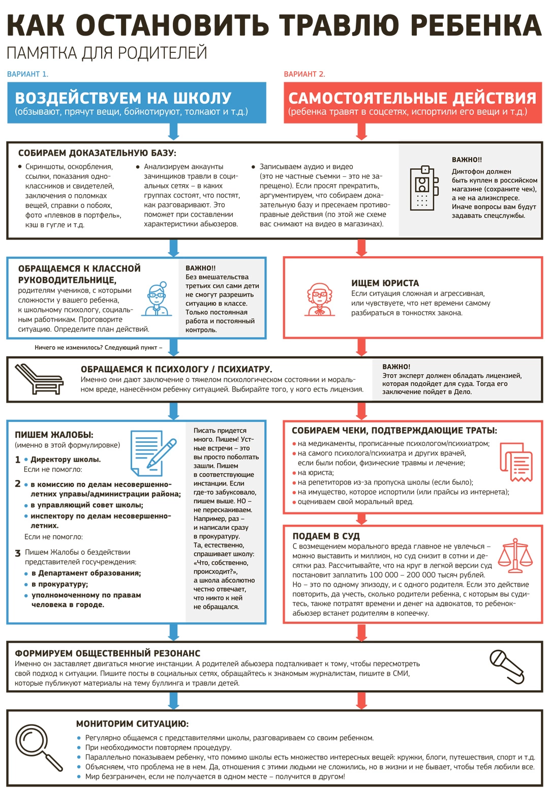 Les parents ne peuvent pas résoudre seuls de tels problèmes. La situation doit être discutée avec l'enseignant, le directeur de l'école, ainsi qu'avec les parents des camarades de classe. Après avoir discuté du problème, vous pouvez agir ensemble. Les enseignants devraient expliquer à leurs élèves ce qu'est la tolérance, la loyauté et le respect d'autrui. Les parents, pour leur part, doivent prêter attention à leur enfant et aux relations au sein de la famille.