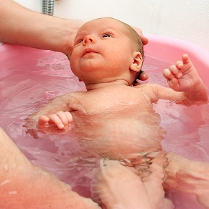 Lorsque la plaie ombilicale guérit, un nouveau-né peut être baigné dans de l'eau chaude ordinaire à une température confortable. Les mousses, shampooings et gels pour bébés ne doivent être utilisés qu'une fois par semaine, même s'ils sont absolument sûrs et hypoallergéniques. Le plus souvent, cela ne vaut pas la peine, pour ne pas priver la peau du bébé de sa protection naturelle.