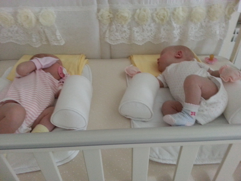 Les jumeaux jusqu'à 3-4 mois peuvent facilement dormir dans un berceau, et en plus, ils seront plus calmes (après tout, ils ont passé 9 mois dans le ventre de leur mère côte à côte 🙂), et c'est plus pratique pour les parents, sans parler de gagner de l'espace (naturellement, un «endroit pour dormir» pour deux enfants devrait être jusqu'à ce qu'ils deviennent à l'étroit et mal à l'aise).