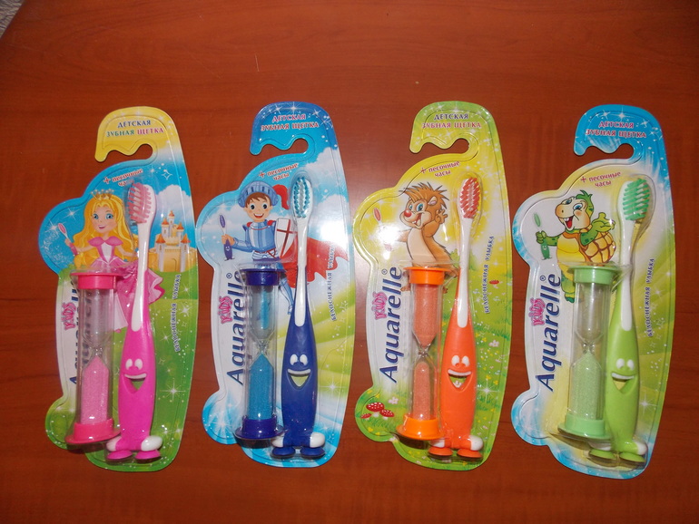 Les brosses pour enfants sont maintenant presque les mêmes. Je n'avais pas besoin d'un sablier, car je contrôlais moi-même l'enfant et suivais le temps.