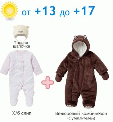 La colonne du thermomètre se situe-t-elle entre 13 et 17 degrés Celsius? La même combinaison en coton fin, un chapeau chaud et une combinaison en velours avec isolation suffisent.