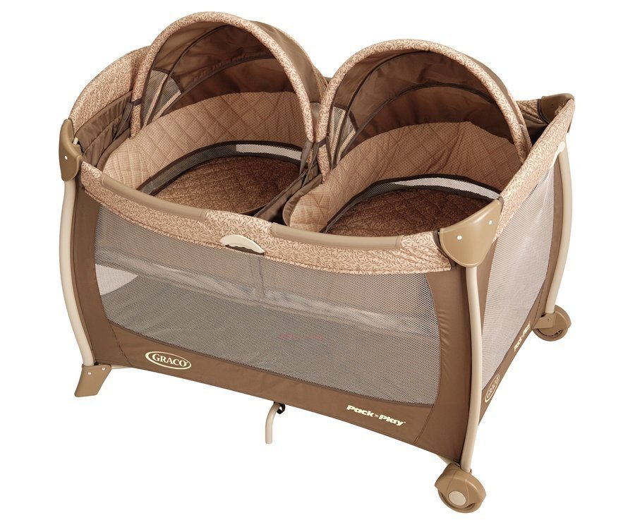 Une autre option confortable pour les jumeaux est un berceau. Ils prennent peu de place, ils peuvent être réorganisés presque partout. Les nouveau-nés seront plus familiers et plus à l'aise dans un espace limité plutôt que dans des lits spacieux. Il existe des options de berceau double.