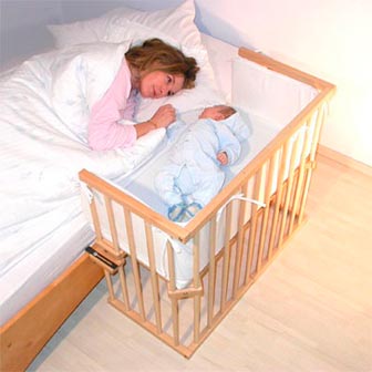 Dormir à côté du bébé, sans craindre que son père ne l'écrase, est possible si vous achetez un lit d'appoint pour les nouveau-nés. Cependant, le bébé peut y dormir jusqu'à trois ans. La paroi latérale d'un tel lit s'incline et maman, ne sortant pas du lit, peut nourrir ou rassurer l'enfant. Du point de vue de la psychologie, une telle intimité est utile et pratique à la fois pour le bébé et la mère.