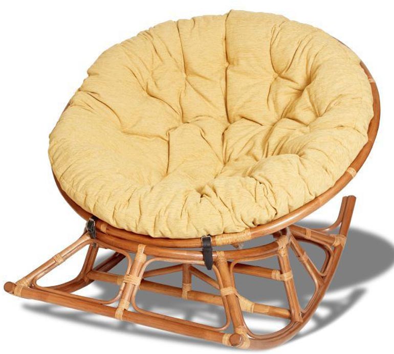 - Écorce - Ceci est une chaise en osier. Il a plus de charge maximale - 120 kg. Un coton est inclus. La chaise est en rotin indonésien. Le mécanisme d'oscillation est à ressort, donc le revêtement de sol ne souffrira pas. Le prix du modèle est de 10 mille;