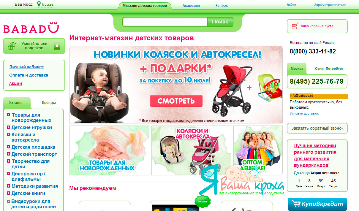 Chaque mère est confrontée à la nécessité d'acheter de nouveaux vêtements, livres, jouets, poussettes et autres choses pour son bébé, mais comment faire son choix parmi tant de magasins qui offrent, semble-t-il, les mêmes services et biens? La boutique en ligne de produits pour enfants Babadu répond à cette question, en fournissant un niveau élevé de service Internet lui-même et une excellente qualité de produits.