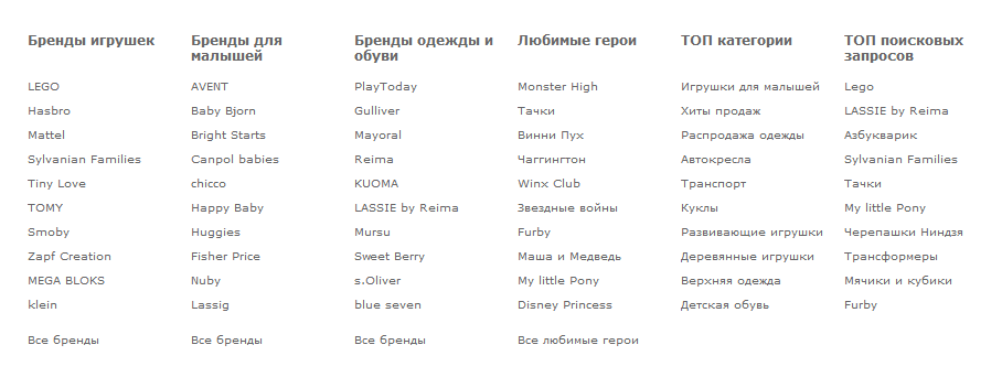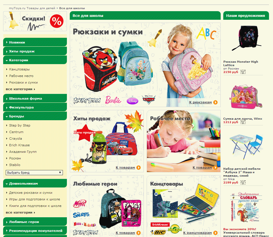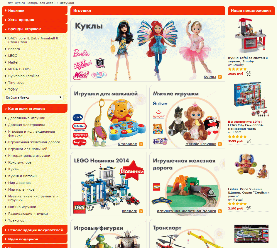 Avec l'avènement du bébé tant attendu, la vie des parents commence à tourner en mode accéléré. Souvent, ils n'ont même pas le temps de bien dormir, de ne pas chercher le bon produit dans différents magasins. Mais tout à l'heure, il y a tant à acheter: du premier hochet au premier transport pour enfants. Dans le même temps, je voudrais également économiser le budget familial. Boutique en ligne bon marché pour les enfants MyToys offre à ses visiteurs absolument tout ce dont ils auront besoin pour un nouveau-né et des écoliers à un prix très raisonnable.