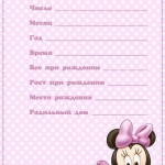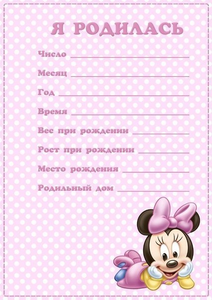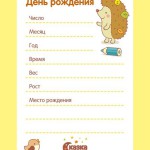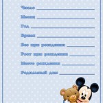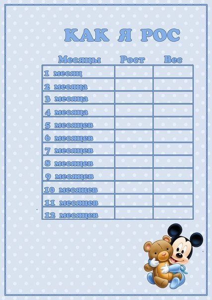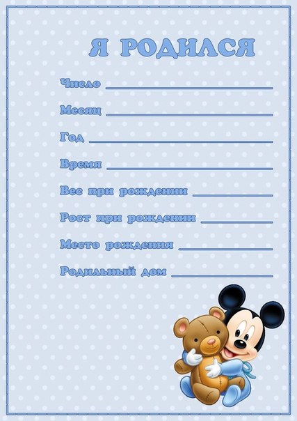 C'est peut-être pour cela qu'il a obtenu un ticket pour la vie "Passeport du nouveau-né". Il s'agit presque du même album, mais sous une forme simplifiée. Il existe de nombreuses images de ce type sur Internet, il vous suffit de les télécharger, de les imprimer et de les remplir. Les lignes pour les remplir sont typiques, sur les principaux points de la première année de vie des miettes, à savoir: