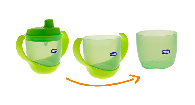 Après la coupe vient «l'ère» de la coupe habituelle. Une tasse, comme tous les plats pour nourrir les enfants, doit être pratique et sûre. Mieux si c'est aussi du plastique. Gardez à l'esprit qu'il n'est pas pratique pour un enfant de tenir une tasse pleine d'une main, vous pouvez donc obtenir une tasse avec deux poignées ou sans poignées du tout. Le volume de la tasse doit être petit, là encore pour la commodité de son petit propriétaire.